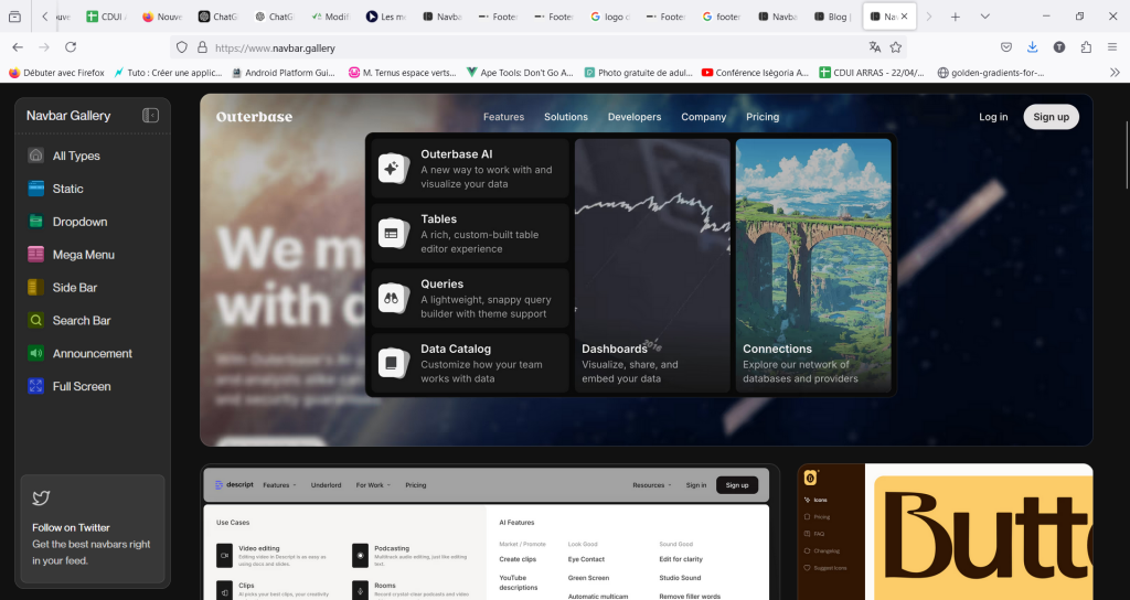 Navbar Gallery est une galerie en ligne dédiée exclusivement aux designs de barres de navigation de sites web. Créée par Christina Liubynska en réponse à un manque identifié dans la communauté du design, Navbar Gallery est une ressource gratuite offrant une inspiration précieuse pour les designers web en quête d’idées innovantes pour leurs propres projets.