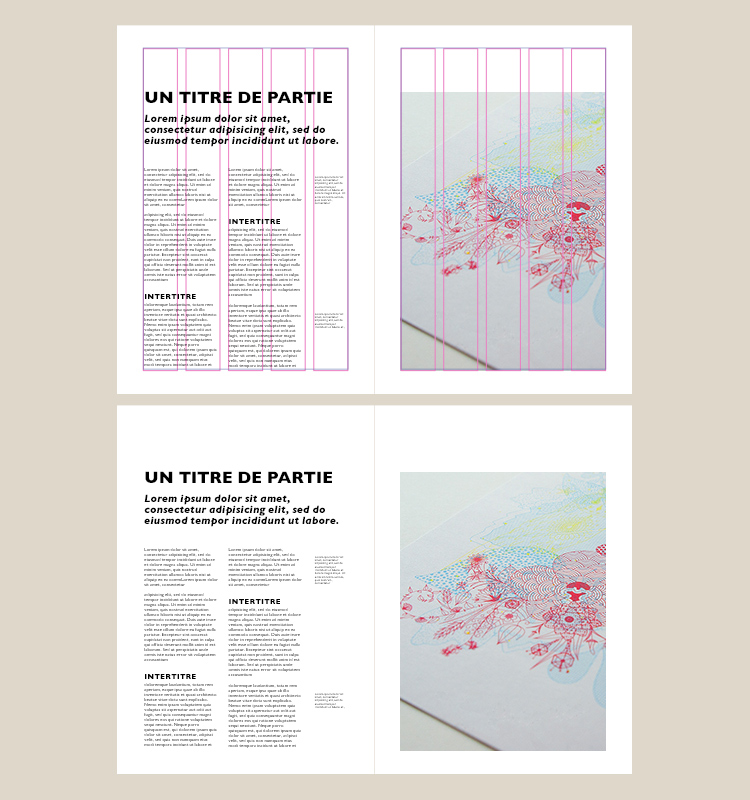 Lorsque vous concevez un document, il convient parfois de doubler le nombre de colonnes initialement envisagé. Par exemple, si vous travaillez sur une page A4 et que vous songiez à utiliser une grille à 3 colonnes, optez plutôt pour 6 colonnes. Vous disposez ainsi d’une plus grande souplesse dans votre design. Il est toujours possible de distribuer un texte en 2 colonnes et d’en utiliser une troisième – plus étroite – pour y aligner des encarts avec photos, des légendes ou des graphiques.